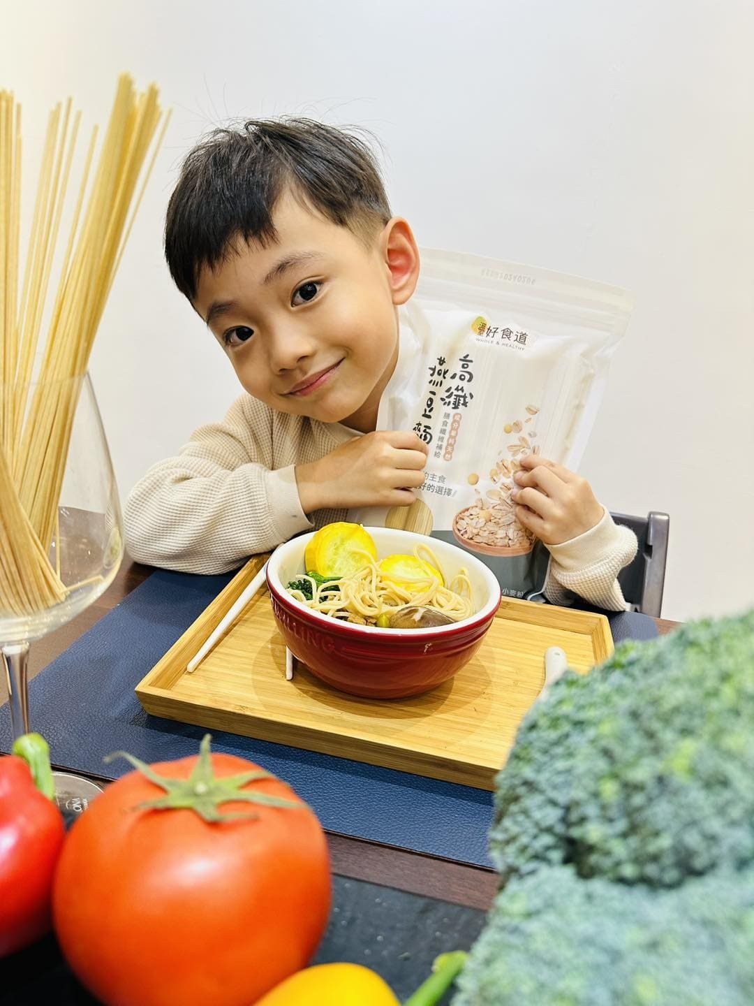 選用黃豆、有機燕麥等優質穀物製作麵條取代傳統的小麥麵條。每100公克含6公克膳食纖維,是一般麵條的3倍!