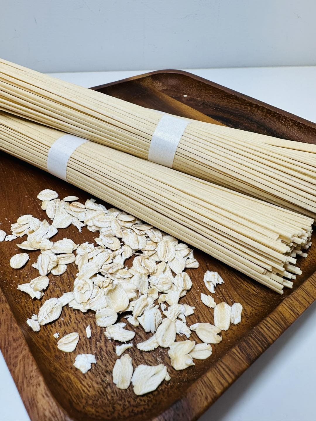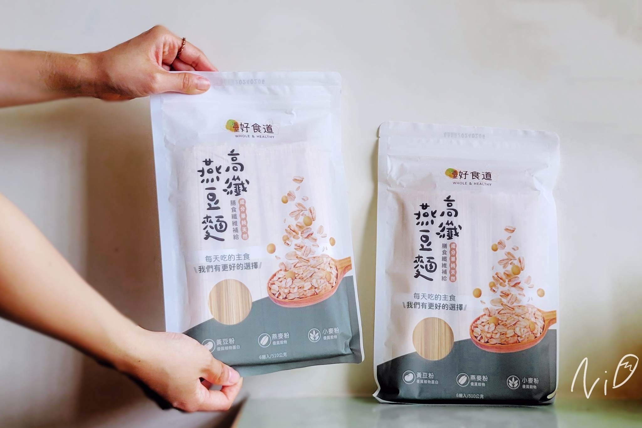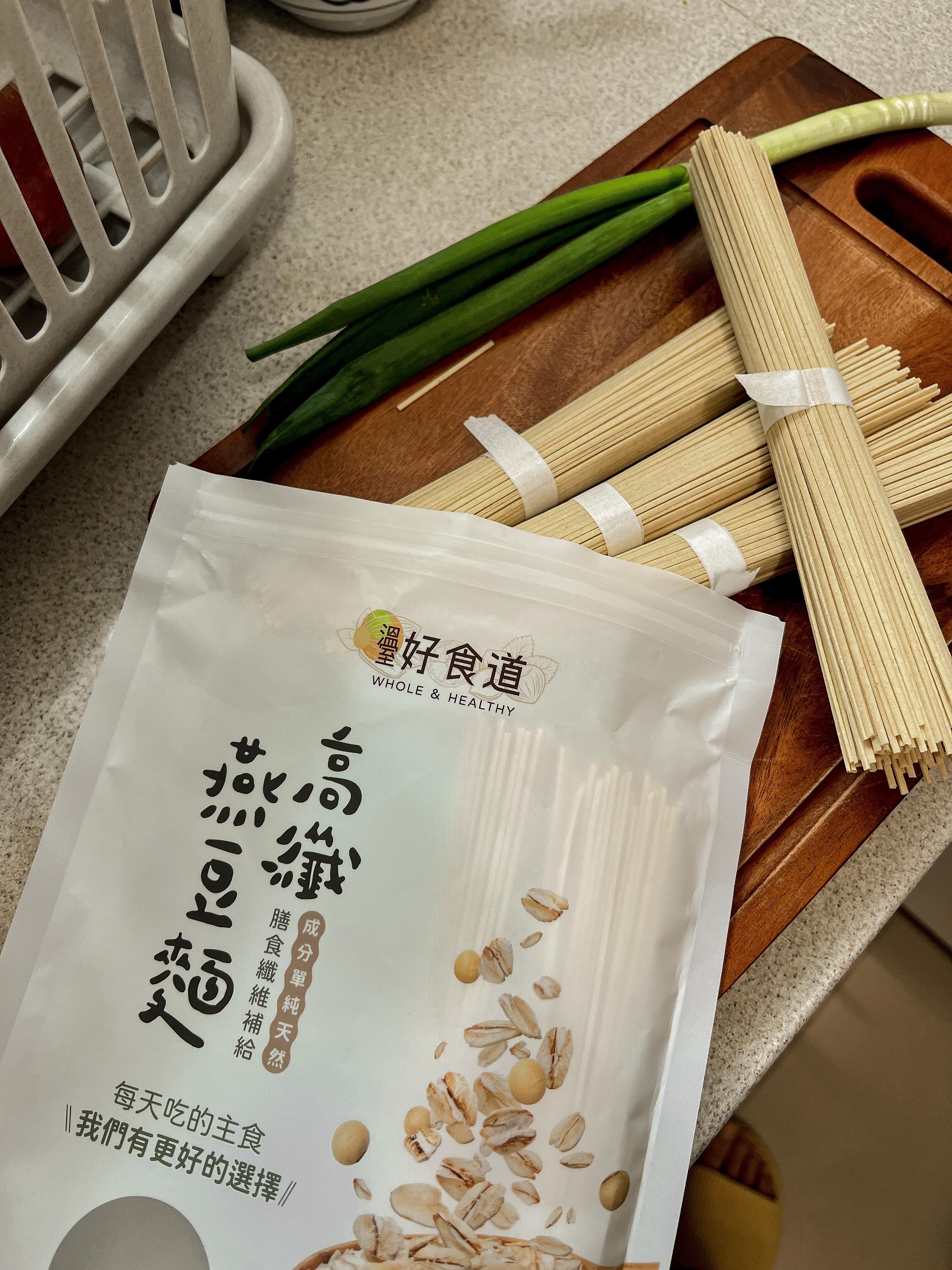 全粒小麥研磨,加入有高量植物蛋白質的黃豆、富含膳食纖維的燕麥後所製成的細麵,滾水煮三分鐘即可完熟。以黃豆、燕麥取代部分比例的麵粉,增加蛋白質、脂肪和膳食纖維的含量,相對減少醣類比例,整體營養更豐富多元;口感不輸給普通麵條,本身還有淡雅的豆香。