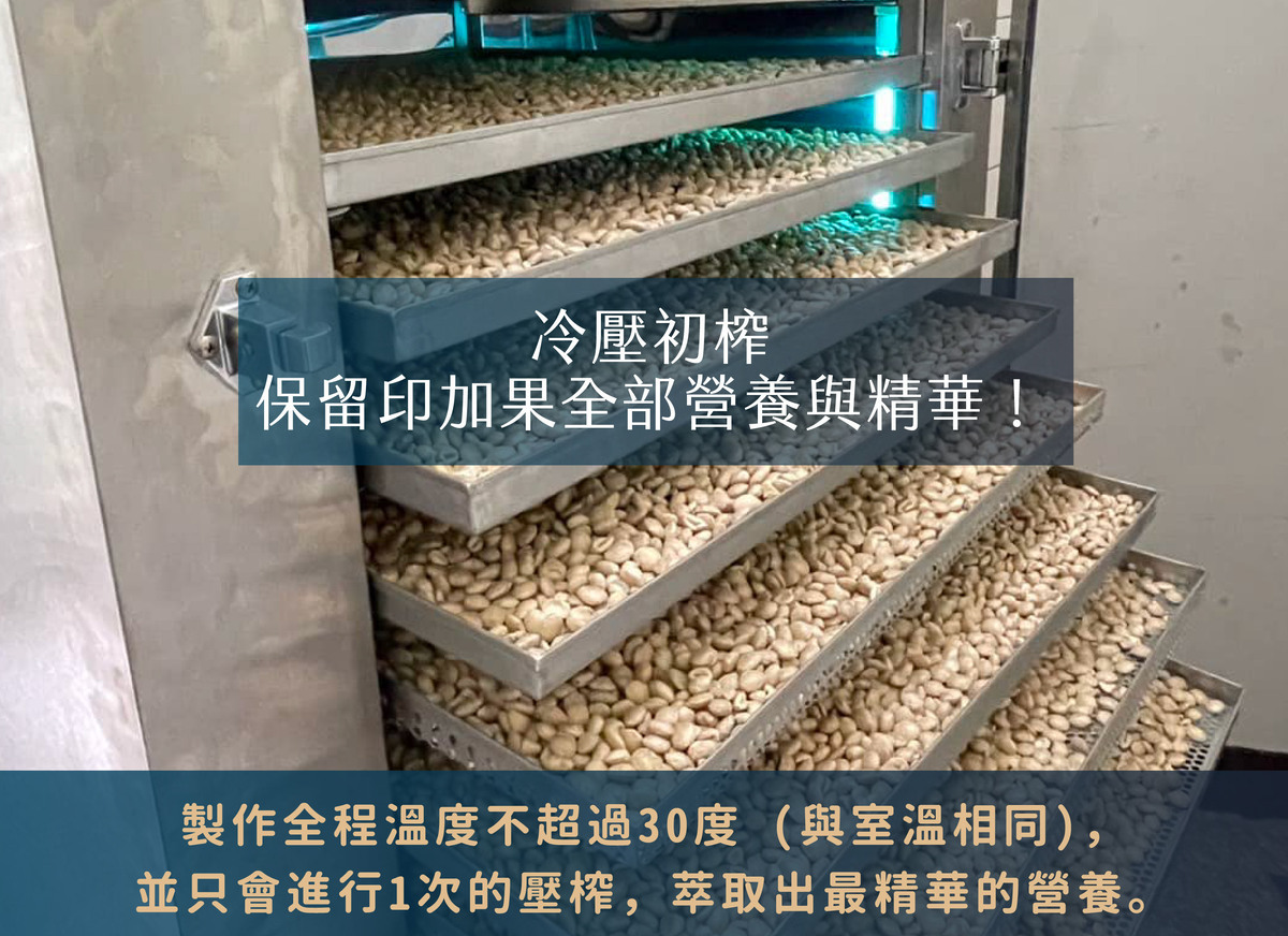 . 榨油全程控制30度內,保留全部營養
