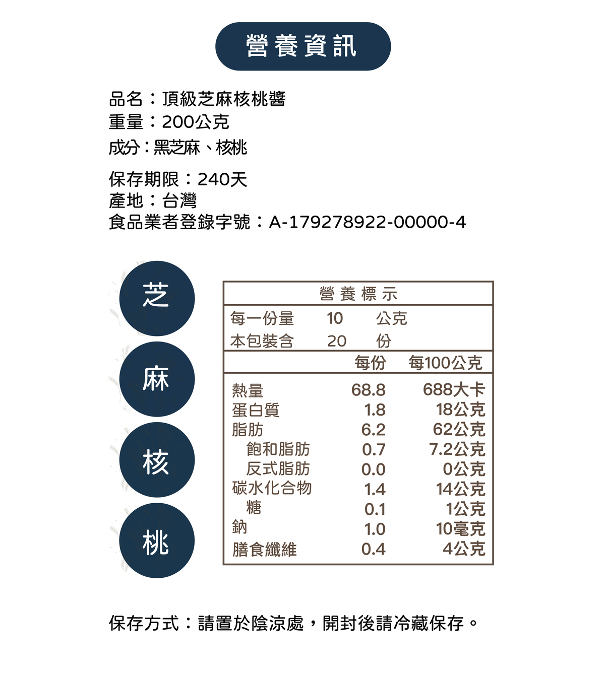 成分:黑芝麻、加州核桃