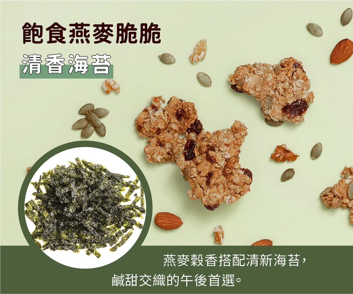 . 融合澳洲燕麥片、海苔粉、南瓜籽、核桃製成